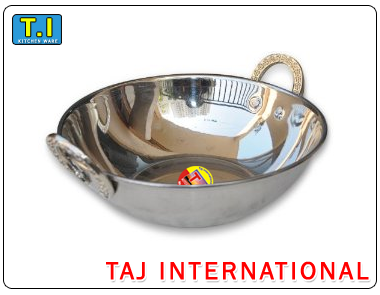 T.I. Karahi are rivetted by elegant and Comfortable handles. All Sizes have a flat Bottom for Stability and it can also use on induction cooker. All have curves sides suitable for Deep Frying and Stir -Frying.